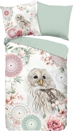 2-teilige, glatte und weiche Satin Bettwäsche aus 100 Prozent Baumwolle mit romantischen Ornamenten und Mandalas